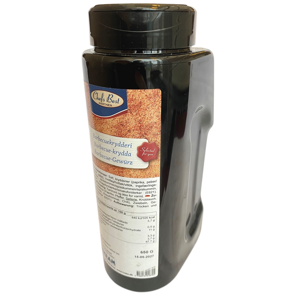 Opdag den perfekte smagsforstærker til din grillaften med 'Grillkrydderi / Barbecue 650 gram' fra Chefs Best.